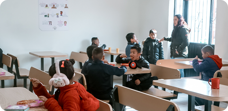 En nuestro programa de alimentación, ofrecemos comida diaria nutritiva, con un toque de cocina en casa, donde la limpieza y calidez hace sentir al niño como en su hogar.